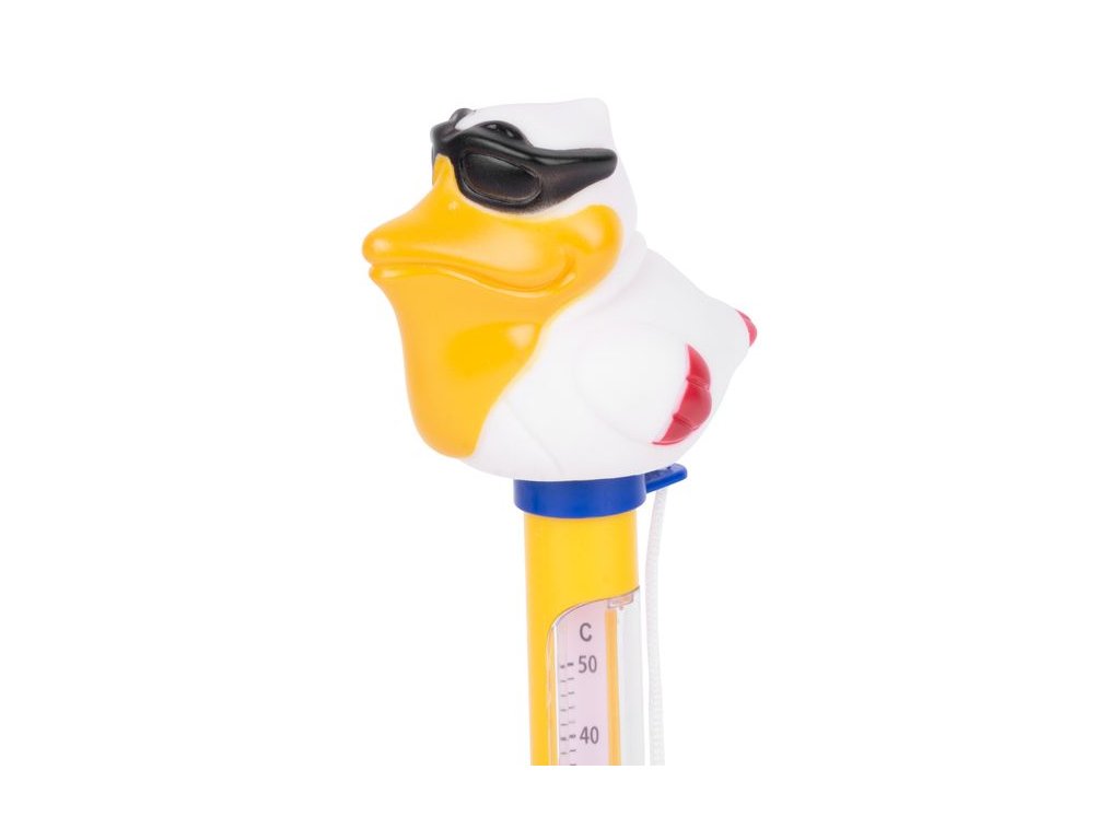 Plávajúci teplomer s pelikánom obzvláštni každý bazén a presne pomerá teplotu vody. Pripevňuje sa pomocou pásika k bazénu, aby ostal na mieste. Teplomer zobrazuje hodnoty v stupňoch Celsia aj Fahrenheita.