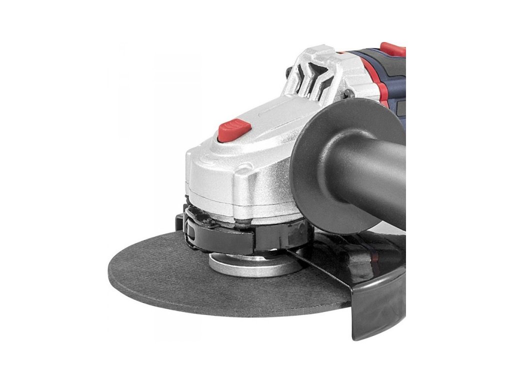 Produkt patrí do novej rady Q9. Mäkká rukoväť pre pohodlnú a bezpečnú prácu. Nízkoprofilové robustné kovové prevedenie hlavy prevodovky zabezpečuje prácu bez vibrácii, aj na ťažko dostupných miestach. Svetelný indikátor napätia. Rýchloupínací ochranný kryt, nastaviteľný bez použitia náradia. Aretácia vretena pre rýchlu a jednoduchú výmenu kotúča. Prídavná rúčka nastaviteľná do 2 pozícií pre flexibilnú a optimálnu pracovnú pohodu. Dodávka bez kotúča.