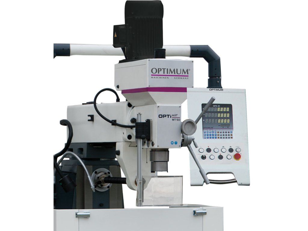 Univerzální vrtačko-frézka pro horizontální i vertikální frézování s digitálním odměřováním DPA 31 plus Obsah dodávky: Digitální odměřování os X, Y, Z;Chladící zařízení;Seřizovací nářadí;Vrtací hlavička 1 - 16 mm/B18;Strojní lampa;Redukce ISO40/MK3, ISO40/MK2;Frézovací trn pro horizont. frézováníDoplňkové parametry
