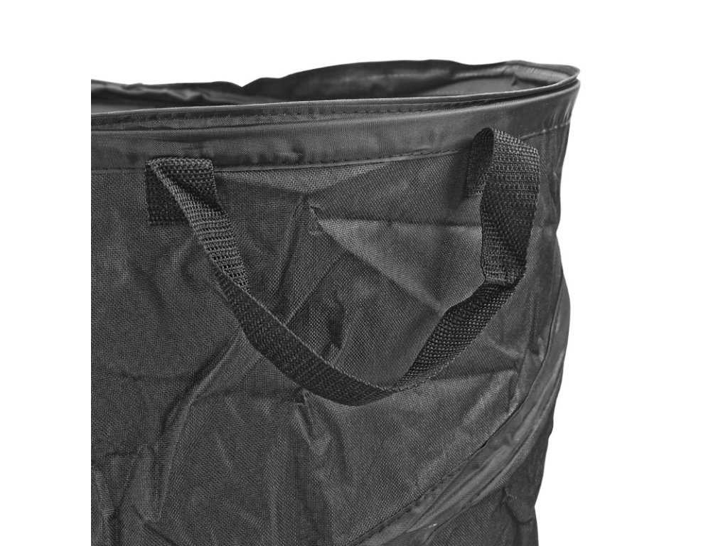 Profesionálne skladacie vrece na záhradný odpad s objemom 200 litrov a štyrmi držadlami. Vďaka bočným popruhom na prenášanie odnesiete pokosenú trávu, burinu, lístie, drvený materiál a iný záhradný odpad do koša na organický odpad alebo do kompostu rýchlo a bez zanechania akýchkoľvek nečistôt. Profesionálne skladacie vrece na záhradný odpad s objemom 200 litrov a štyrmi držadlami. Vďaka bočným popruhom na prenášanie odnesiete pokosenú trávu, burinu, lístie, drvený materiál a iný záhradný odpad do koša na organický odpad alebo do kompostu rýchlo a bez zanechania akýchkoľvek nečistôt. Vhodné aj na prepravu záhradného odpadu do zberného dvora. Pop-up systém zaisťuje, že vak na záhradný odpad stojí samostatne, a tak ho nepotrebujete držať rukou. A keď sa nepoužíva, jeho uskladnenie nezaberie veľa priestoru. Držadlá na jednoduché premiestňovanie a vyprázdňovanie, 2 uzatváracie konzoly s očkom na zavesenie, keď sa nepoužíva. Vyrobené z vysoko kvalitného polyesteru (tkaniny z polyesterových vlákien) Oxford 600D. Odpudzujúce vodu, samostatne stojace vďaka pop-up technológii (všitá a predpätá oceľová pružina), priestorovo úsporné skladovanie. Farba: čierna Materiál: polyester 190 g/m2 Oxford 600D (tkanina z polyesterových vláken) Objem: 200 l Priemer: 600 mm Výška: 700 mm Rozmery v zloženom stave (ØxV): 600 x 80 mm Hmotnosť: 1,07 kgDoplňkové parametry