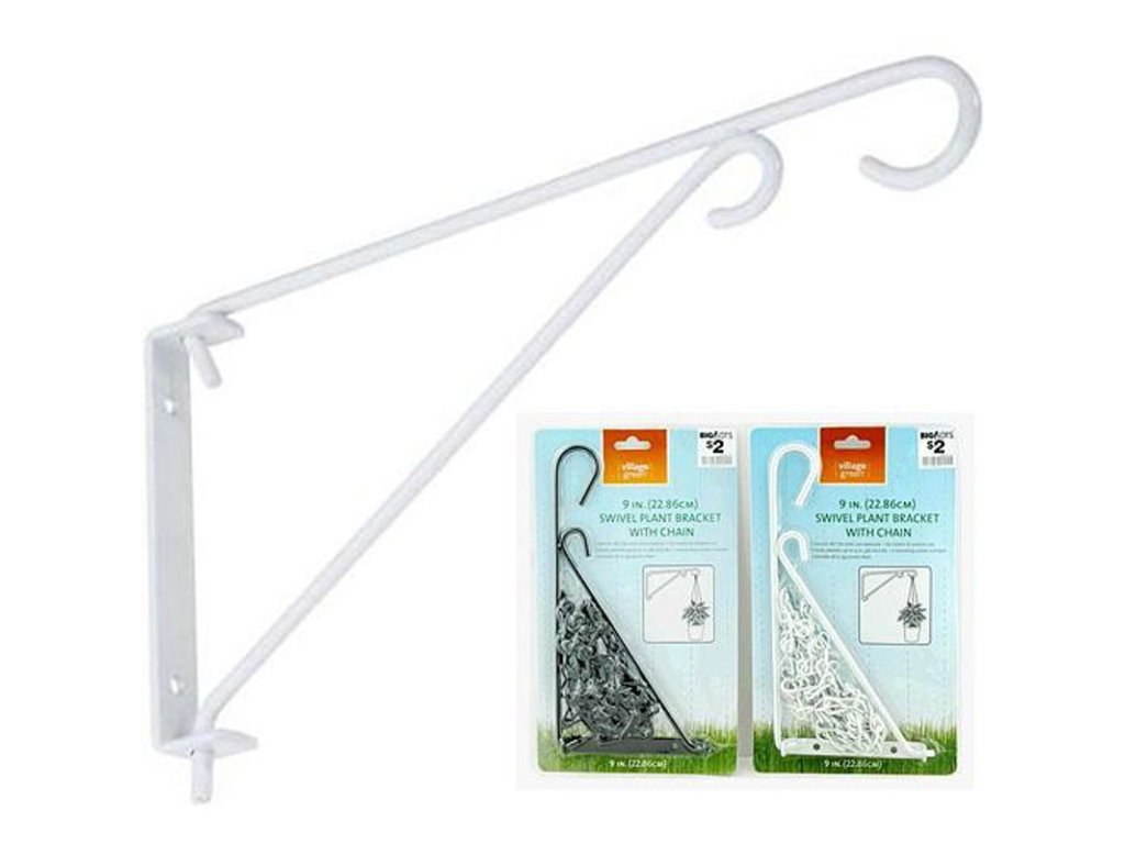 Ozdobný kovový vešiak Strend Pro na kvetináče v bielej farbe. Balenie obsahuje aj 50 cm reťaz. Rozmery: 24x12 cm.