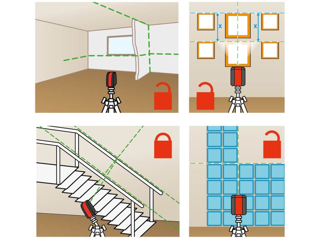 - zablokovanie samonivelácie pre možnosť projekcie laserovej línie do potrebného uhla sklonu