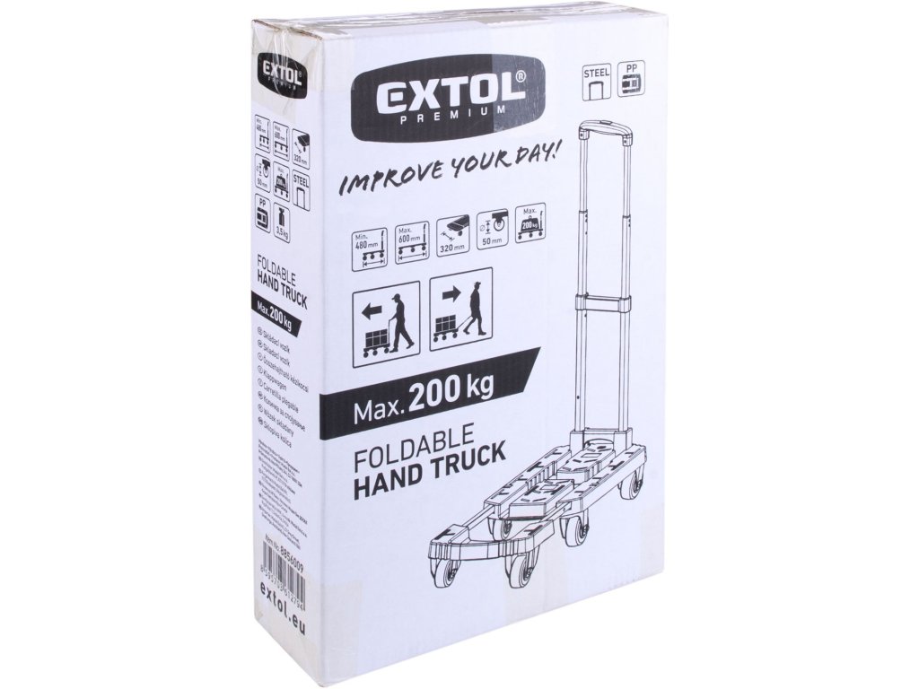 Vozík skladací plošinový, nosnosť 200kg, max. ložná plocha 60x32cm, 6 koliesok, EXTOL PREMIUM