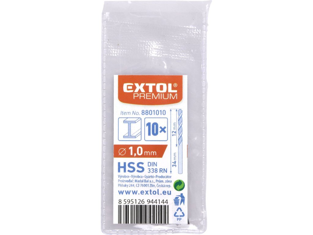 vrták do kovu HSS, bal 10ks, O 1,0mm, EXTOL PREMIUM