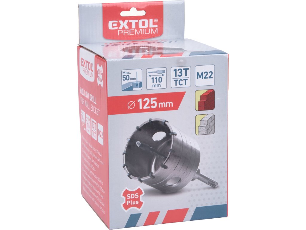 vrták SDS PLUS do zdiva korunkový, O 125mm x 110mm, M22, EXTOL PREMIUM