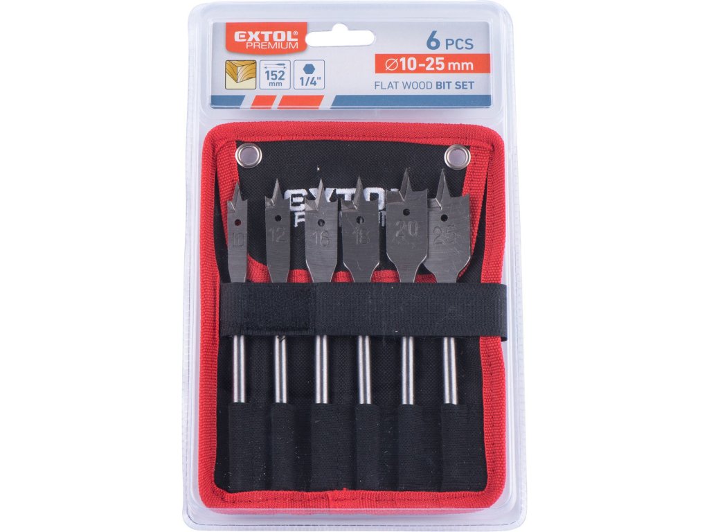 vrtáky ploché do dřeva, sada 6ks, O 10-25mm, EXTOL PREMIUM