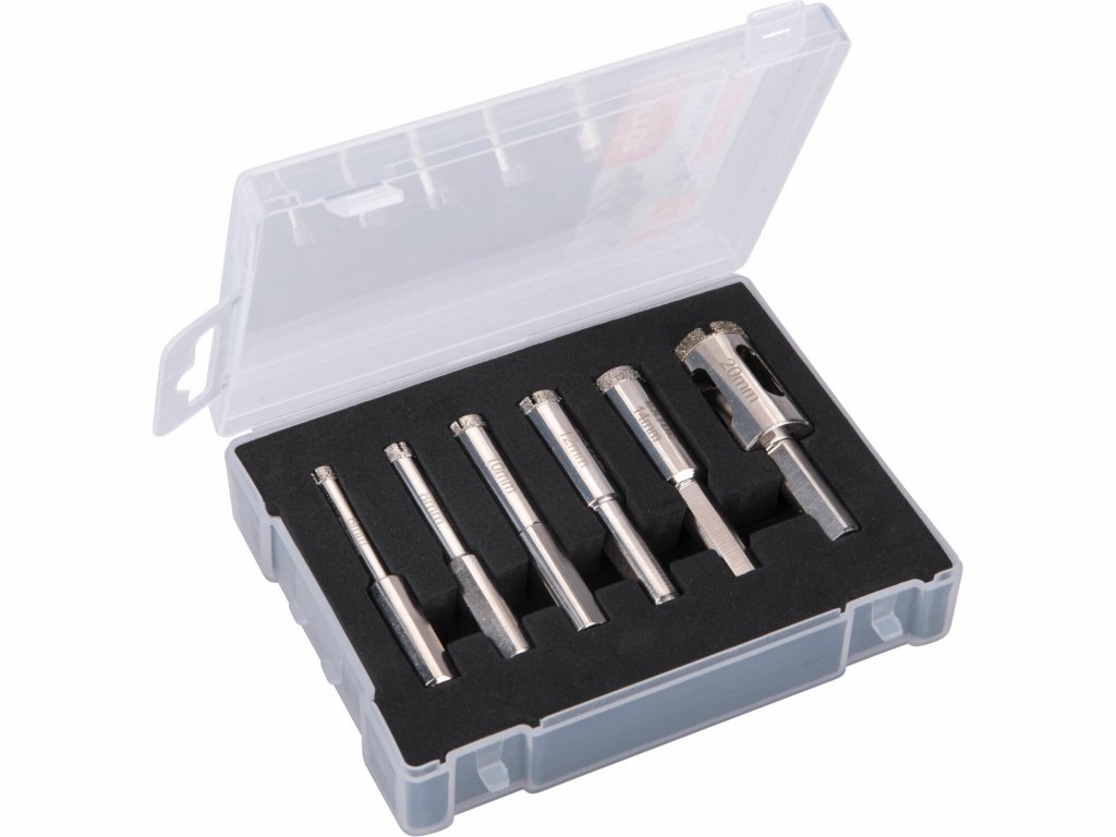 Vrtáky korunkové diamantové, sada 6ks, 6-8-10-12-14-20mm, plastová krabička