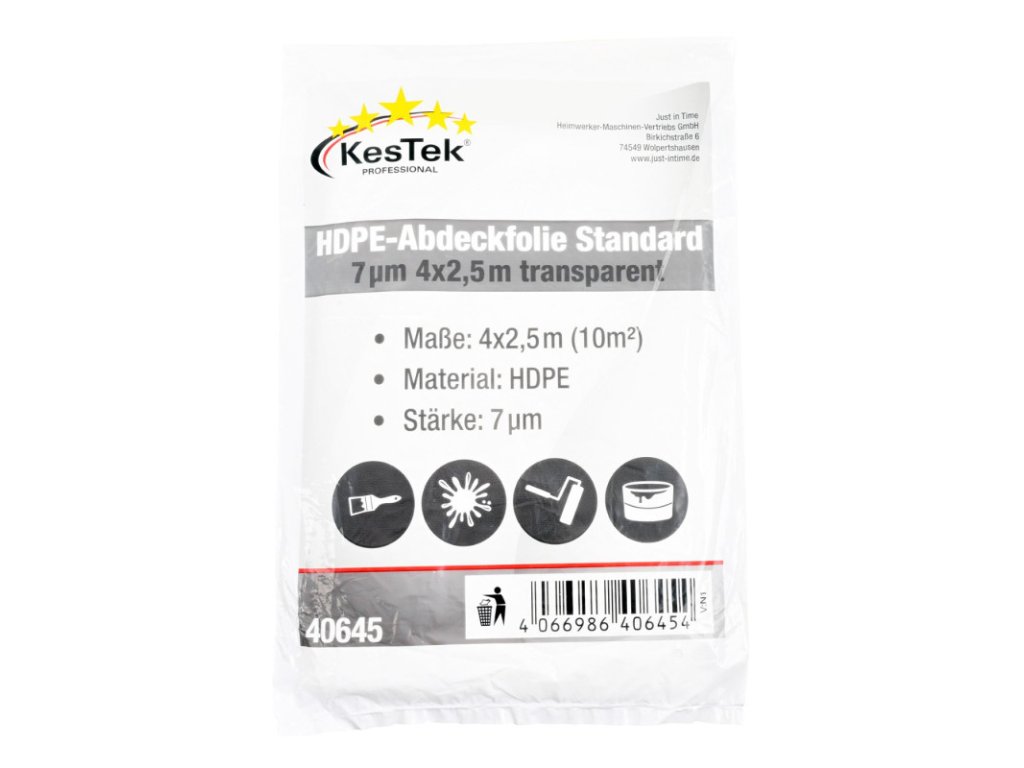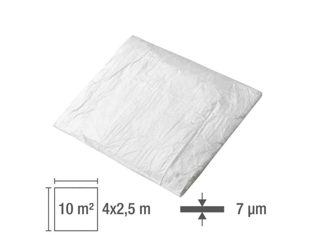 Krycia maliarska fólia štandardnej hrúbky, priehľadná. HDPE krycia fólia ponúka spoľahlivú ochranu pred prachom, nečistotami a striekajúcou farbou. Vďaka fólii sa lak, pasta, farba a ďalšie materiály neprichytia na nábytok a podlahy. Ideálna na maľovanie, brúsenie a reštaurátorské práce v dielni. Krycia maliarska fólia štandardnej hrúbky, priehľadná. HDPE krycia fólia ponúka spoľahlivú ochranu pred prachom, nečistotami a striekajúcou farbou. Vďaka fólii sa lak, pasta, farba a ďalšie materiály neprichytia na nábytok a podlahy. Ideálna na maľovanie, brúsenie a reštaurátorské práce v dielni. Vhodná na vnútorné použitie, vodotesná, skladacia, opakovane použiteľná. Materiál: HDPE Hrúbka fólie: 7 µm Vyhotovenie: priehľadné Celkové rozmery: 4 x 2,5 m (10 m2) Hmotnosť: 70 gDoplňkové parametry