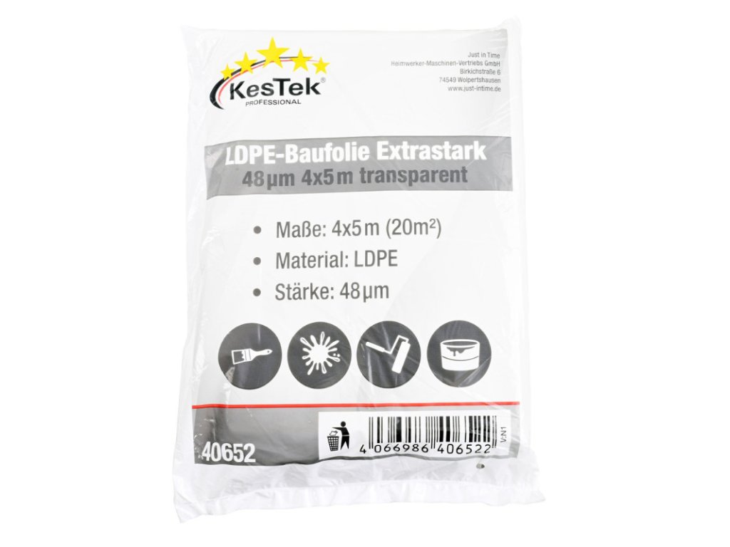 Zakrývacia fólia stavebná 4x5 m LDPE extra hrubá, priehľadná