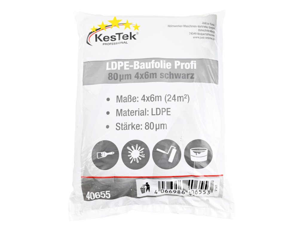Krycia maliarska fólia profesionálna, čierna. LDPE krycia fólia ponúka spoľahlivú ochranu pred prachom, nečistotami a striekajúcou farbou. Vďaka fólii sa lak, pasta, farba a ďalšie materiály neprichytia na nábytok a podlahy. Ideálna na maľovanie, brúsenie a reštaurátorské práce v dielni. Krycia maliarska fólia profesionálna, čierna. LDPE krycia fólia ponúka spoľahlivú ochranu pred prachom, nečistotami a striekajúcou farbou. Vďaka fólii sa lak, pasta, farba a ďalšie materiály neprichytia na nábytok a podlahy. Ideálna na maľovanie, brúsenie a reštaurátorské práce v dielni. Vhodná na vnútorné aj vonkajšie použitie, vodotesná, skladacia, opakovane použiteľná. Materiál: LDPE Hrúbka fólie: 80 µm Vyhotovenie: čierne Celkové rozmery: 4 x 6 m (24 m2) Hmotnosť: 1,5 kgDoplňkové parametry