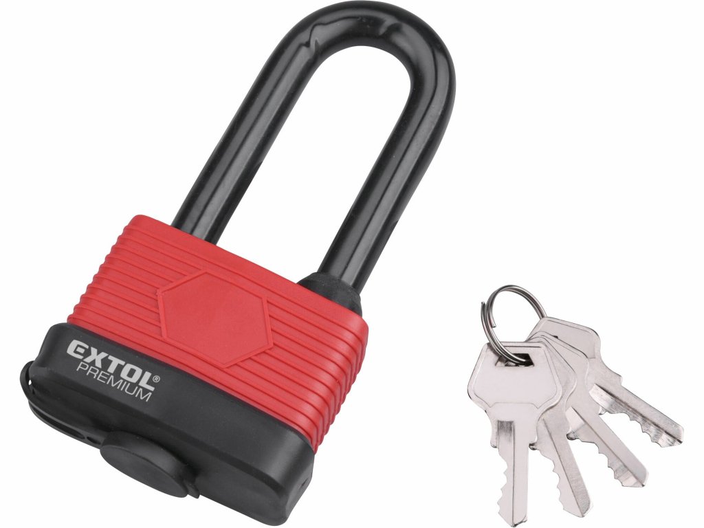 Zámok visací vodeodolný poplastovaný predĺžený, 4 kľúče, 65mm, EXTOL PREMIUM