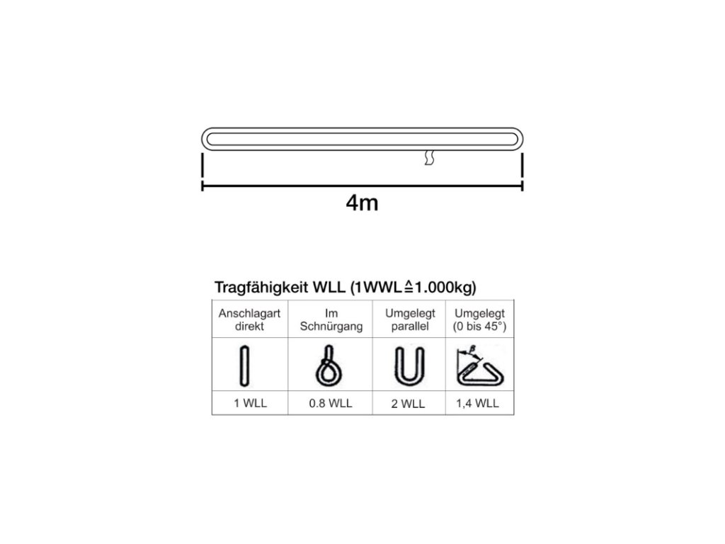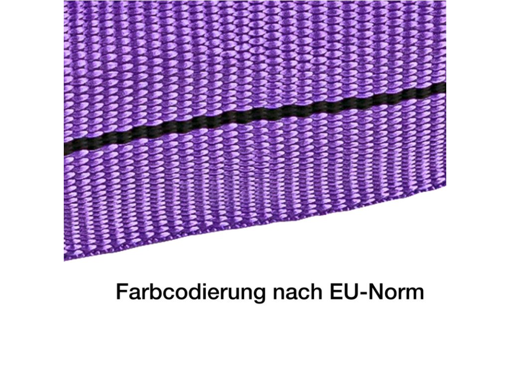 Zdvíhací kruhový popruh na zdvíhanie, ťahanie, alebo upevňovanie bremien na staveniskách, v teréne a poľnohospodárstve, v domácnosti. Modrý štítok testovania, všitý identifikačný štítok a návod na použitie. Farebné kódovanie podľa noriem EÚ. Zdvíhací kruhový popruh na zdvíhanie, ťahanie, alebo upevňovanie bremien na staveniskách, v teréne a poľnohospodárstve, v domácnosti. Modrý štítok testovania, všitý identifikačný štítok a návod na použitie. Farebné kódovanie podľa noriem EÚ. Nosnosť WLL 1000 kg (WLL – Working Load Limit) vytlačená na popruhu. Plášť z polyesteru (PES), jadro z polyesterovej priadze. Teplotný rozsah: od -40°C do +100°C (bez mrazuvzdornosti) Maximálna nosnosť pri priamom zaťažení: 1000 kg Maximálna nosnosť pri slučke: 800 kg Maximálna nosnosť pri preložení: 2000 kg Maximálna nosnosť pri sklone 0-45°: 1400 kg Farebné kódovanie: fialová GS testované podľa EN1492-2/A1:2008 Nominálna dĺžka: 4 m Obvod: 8 m Hmotnosť: 1 kg Upozornenie: Maximálna špecifikovaná nosnosť sa vzťahuje na priame zaťaženie. Pre slučkovanie alebo pri použití so sklonom sú výsledné rôzne hodnoty zaťaženia.Doplňkové parametry