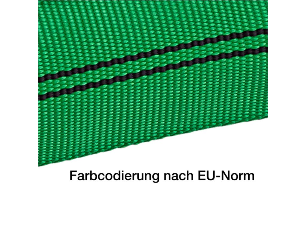 Zdvíhací kruhový popruh na zdvíhanie, ťahanie, alebo upevňovanie bremien na staveniskách, v teréne a poľnohospodárstve, v domácnosti. Modrý štítok testovania, všitý identifikačný štítok a návod na použitie. Farebné kódovanie podľa noriem EÚ. Zdvíhací kruhový popruh na zdvíhanie, ťahanie, alebo upevňovanie bremien na staveniskách, v teréne a poľnohospodárstve, v domácnosti. Modrý štítok testovania, všitý identifikačný štítok a návod na použitie. Farebné kódovanie podľa noriem EÚ. Nosnosť WLL 2000 kg (WLL – Working Load Limit) vytlačená na popruhu. Plášť z polyesteru (PES), jadro z polyesterovej priadze. Teplotný rozsah: od -40°C do +100°C (bez mrazuvzdornosti) Maximálna nosnosť pri priamom zaťažení: 2000 kg Maximálna nosnosť pri slučke: 1600 kg Maximálna nosnosť pri preložení: 4000 kg Maximálna nosnosť pri sklone 0-45°: 2800 kg Farebné kódovanie: zelená GS testované podľa EN1492-2/A1:2008 Nominálna dĺžka: 4 m Obvod: 8 m Hmotnosť: 1,515 kg Upozornenie: Maximálna špecifikovaná nosnosť sa vzťahuje na priame zaťaženie. Pre slučkovanie alebo pri použití so sklonom sú výsledné rôzne hodnoty zaťaženia.Doplňkové parametry