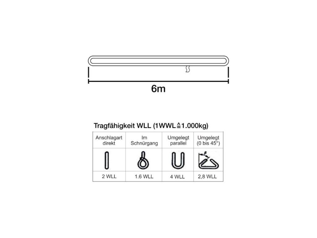 Zdvíhací kruhový popruh na zdvíhanie, ťahanie, alebo upevňovanie bremien na staveniskách, v teréne a poľnohospodárstve, v domácnosti. Modrý štítok testovania, všitý identifikačný štítok a návod na použitie. Farebné kódovanie podľa noriem EÚ. Zdvíhací kruhový popruh na zdvíhanie, ťahanie, alebo upevňovanie bremien na staveniskách, v teréne a poľnohospodárstve, v domácnosti. Modrý štítok testovania, všitý identifikačný štítok a návod na použitie. Farebné kódovanie podľa noriem EÚ. Nosnosť WLL 2000 kg (WLL – Working Load Limit) vytlačená na popruhu. Plášť z polyesteru (PES), jadro z polyesterovej priadze. Teplotný rozsah: od -40°C do +100°C (bez mrazuvzdornosti) Maximálna nosnosť pri priamom zaťažení: 2000 kg Maximálna nosnosť pri slučke: 1600 kg Maximálna nosnosť pri preložení: 4000 kg Maximálna nosnosť pri sklone 0-45°: 2800 kg Farebné kódovanie: zelená GS testované podľa EN1492-2/A1:2008 Nominálna dĺžka: 6 m Obvod: 12 m Hmotnosť: 2,385 kg Upozornenie: Maximálna špecifikovaná nosnosť sa vzťahuje na priame zaťaženie. Pre slučkovanie alebo pri použití so sklonom sú výsledné rôzne hodnoty zaťaženia.Doplňkové parametry