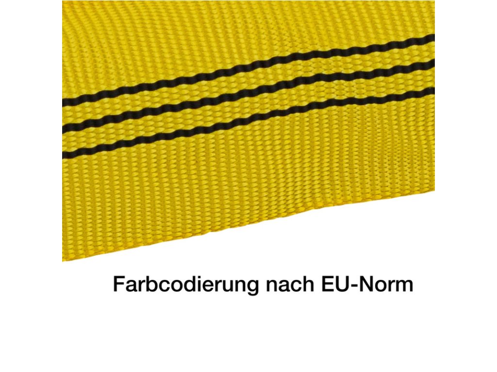 Zdvíhací kruhový popruh na zdvíhanie, ťahanie, alebo upevňovanie bremien na staveniskách, v teréne a poľnohospodárstve, v domácnosti. Modrý štítok testovania, všitý identifikačný štítok a návod na použitie. Farebné kódovanie podľa noriem EÚ. Zdvíhací kruhový popruh na zdvíhanie, ťahanie, alebo upevňovanie bremien na staveniskách, v teréne a poľnohospodárstve, v domácnosti. Modrý štítok testovania, všitý identifikačný štítok a návod na použitie. Farebné kódovanie podľa noriem EÚ. Nosnosť WLL 3000 kg (WLL – Working Load Limit) vytlačená na popruhu. Plášť z polyesteru (PES), jadro z polyesterovej priadze. Teplotný rozsah: od -40°C do +100°C (bez mrazuvzdornosti) Maximálna nosnosť pri priamom zaťažení: 3000 kg Maximálna nosnosť pri slučke: 2400 kg Maximálna nosnosť pri preložení: 6000 kg Maximálna nosnosť pri sklone 0-45°: 4200 kg Farebné kódovanie: žltá GS testované podľa EN1492-2/A1:2008 Nominálna dĺžka: 4 m Obvod: 8 m Hmotnosť: 2,455 kg Upozornenie: Maximálna špecifikovaná nosnosť sa vzťahuje na priame zaťaženie. Pre slučkovanie alebo pri použití so sklonom sú výsledné rôzne hodnoty zaťaženia.Doplňkové parametry