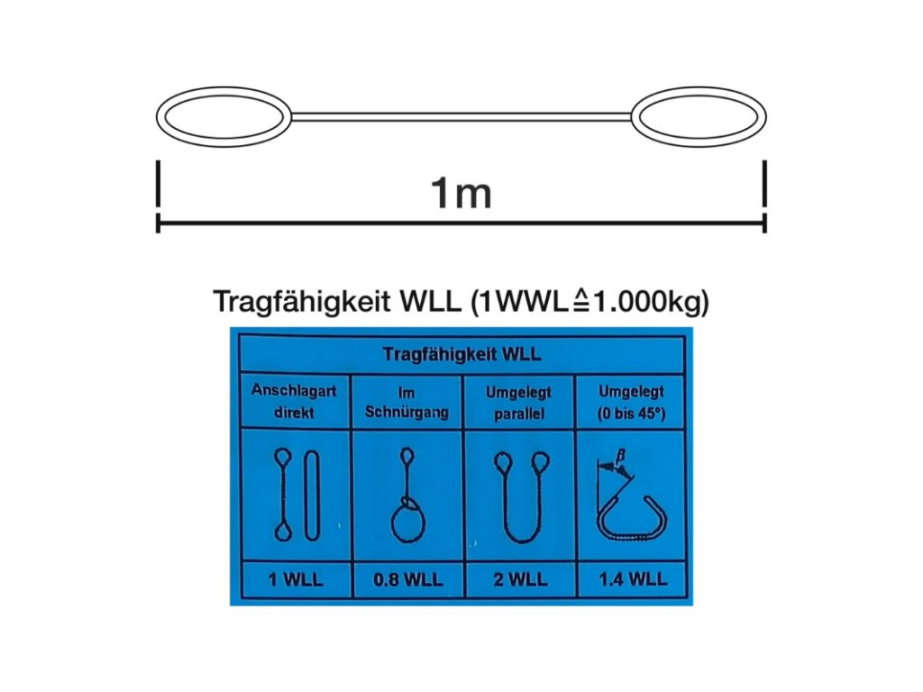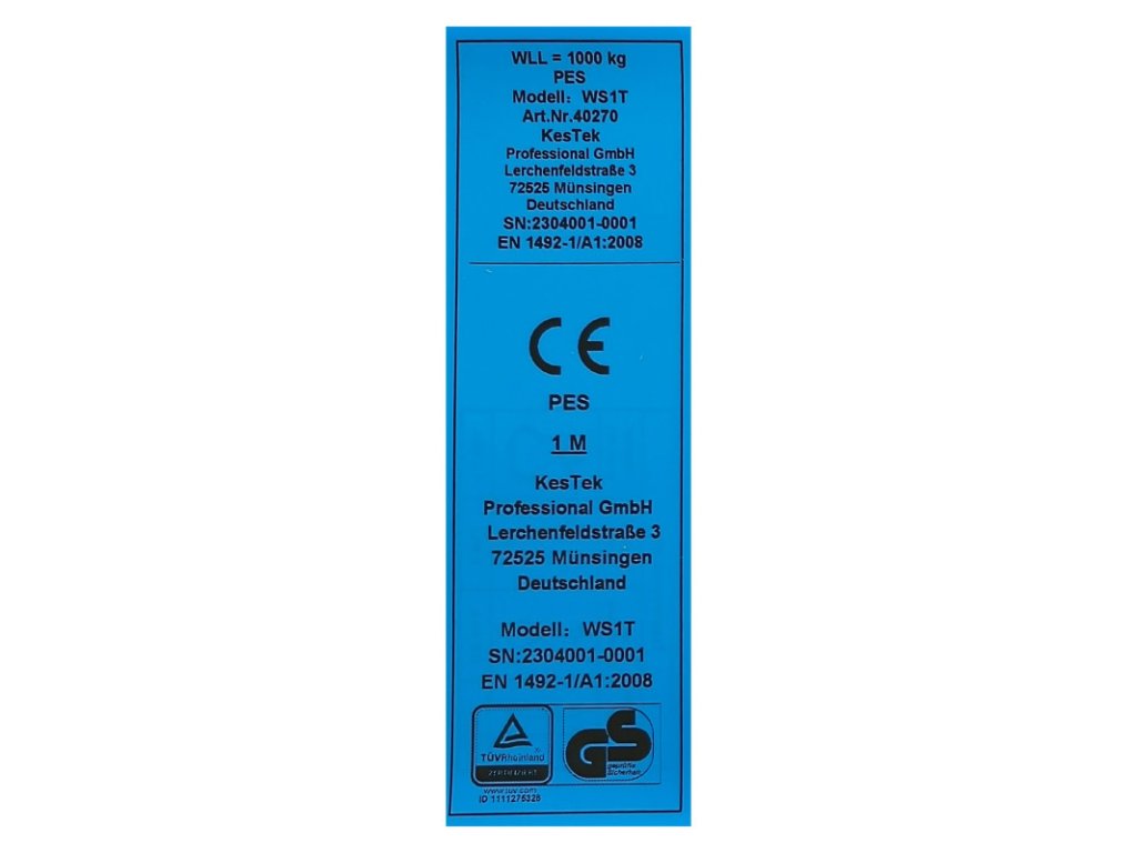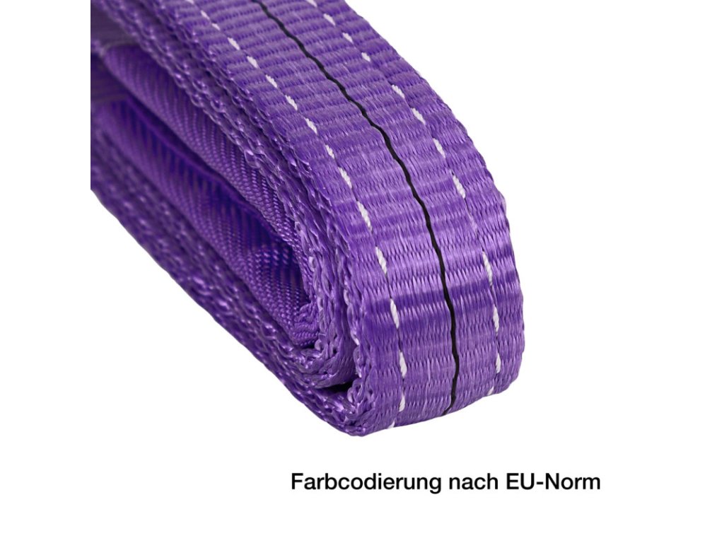 Zdvíhací popruh na zdvíhanie, ťahanie, alebo upevňovanie bremien na staveniskách, v teréne, v domácnosti a podobne. Modrý štítok testovania, všitý identifikačný štítok a návod na použitie. Farebné kódovanie podľa noriem EÚ. Nosnosť WLL 1000 kg (WLL – Working Load Limit) vytlačená na popruhu. Zdvíhací popruh na zdvíhanie, ťahanie, alebo upevňovanie bremien na staveniskách, v teréne, v domácnosti a podobne. Modrý štítok testovania, všitý identifikačný štítok a návod na použitie. Farebné kódovanie podľa noriem EÚ. Nosnosť WLL 1000 kg (WLL – Working Load Limit) vytlačená na popruhu. Popruh vyrobený z vysoko kvalitného polyesteru (PES), zosilnené koncové slučky, široká nosná plocha. Maximálna nosnosť pri priamom zaťažení: 1000 kg Maximálna nosnosť pri slučke: 800 kg Maximálna nosnosť pri preložení: 2000 kg Maximálna nosnosť pri sklone 0-45°: 1400 kg Farebné kódovanie: fialová GS testované podľa EN1492-1/A1:2008 Šírka popruhu: 30 mm Celková dĺžka: 1 m Hmotnosť: 214 gDoplňkové parametry