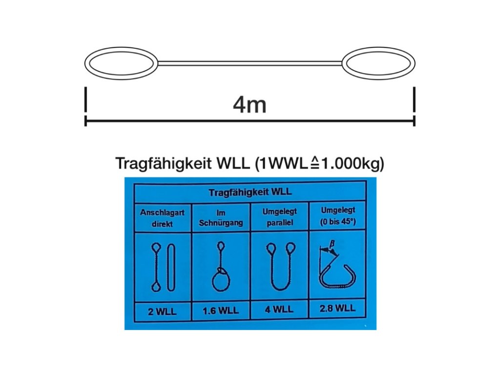 Zdvíhací popruh na zdvíhanie, ťahanie, alebo upevňovanie bremien na staveniskách, v teréne, v domácnosti a podobne. Modrý štítok testovania, všitý identifikačný štítok a návod na použitie. Farebné kódovanie podľa noriem EÚ. Nosnosť WLL 2000 kg (WLL – Working Load Limit) vytlačená na popruhu. Zdvíhací popruh na zdvíhanie, ťahanie, alebo upevňovanie bremien na staveniskách, v teréne, v domácnosti a podobne. Modrý štítok testovania, všitý identifikačný štítok a návod na použitie. Farebné kódovanie podľa noriem EÚ. Nosnosť WLL 2000 kg (WLL – Working Load Limit) vytlačená na popruhu. Popruh vyrobený z vysoko kvalitného polyesteru (PES), zosilnené koncové slučky, široká nosná plocha. Maximálna nosnosť pri priamom zaťažení: 2000 kg Maximálna nosnosť pri slučke: 1600 kg Maximálna nosnosť pri preložení: 4000 kg Maximálna nosnosť pri sklone 0-45°: 2800 kg Farebné kódovanie: zelená GS testované podľa EN1492-1/A1:2008 Šírka popruhu: 60 mm Celková dĺžka: 2 m Hmotnosť: 750 gDoplňkové parametry