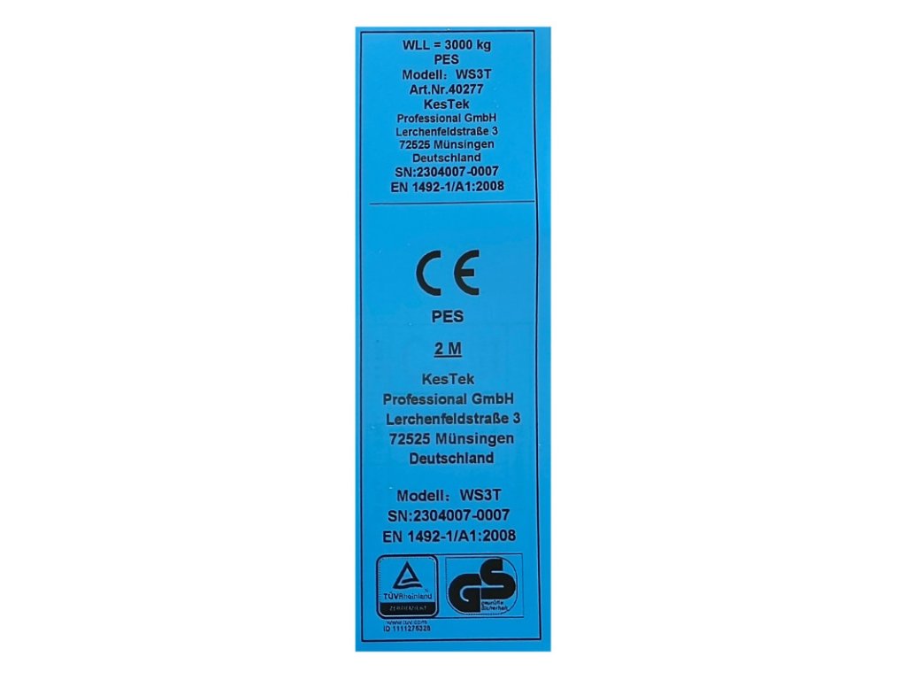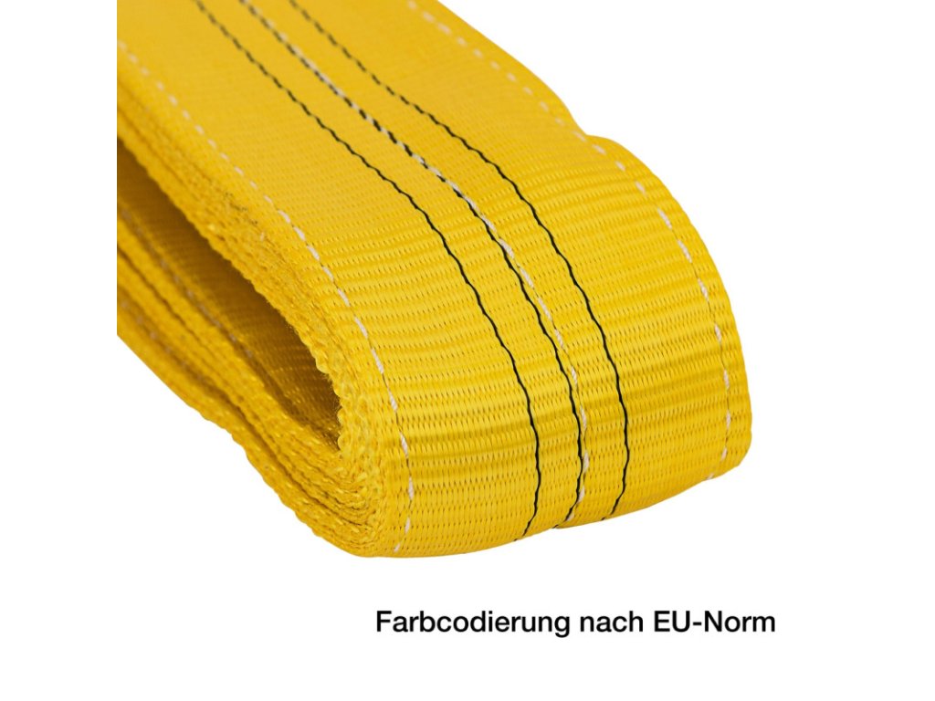 Zdvíhací popruh na zdvíhanie, ťahanie, alebo upevňovanie bremien na staveniskách, v teréne, v domácnosti a podobne. Modrý štítok testovania, všitý identifikačný štítok a návod na použitie. Farebné kódovanie podľa noriem EÚ. Nosnosť WLL 3000 kg (WLL – Working Load Limit) vytlačená na popruhu. Zdvíhací popruh na zdvíhanie, ťahanie, alebo upevňovanie bremien na staveniskách, v teréne, v domácnosti a podobne. Modrý štítok testovania, všitý identifikačný štítok a návod na použitie. Farebné kódovanie podľa noriem EÚ. Nosnosť WLL 3000 kg (WLL – Working Load Limit) vytlačená na popruhu. Popruh vyrobený z vysoko kvalitného polyesteru (PES), zosilnené koncové slučky, široká nosná plocha. Maximálna nosnosť pri priamom zaťažení: 3000 kg Maximálna nosnosť pri slučke: 2400 kg Maximálna nosnosť pri preložení: 6000 kg Maximálna nosnosť pri sklone 0-45°: 4200 kg Farebné kódovanie: žltá GS testované podľa EN1492-1/A1:2008 Šírka popruhu: 90 mm Celková dĺžka: 2 m Hmotnosť: 1,128 kgDoplňkové parametry
