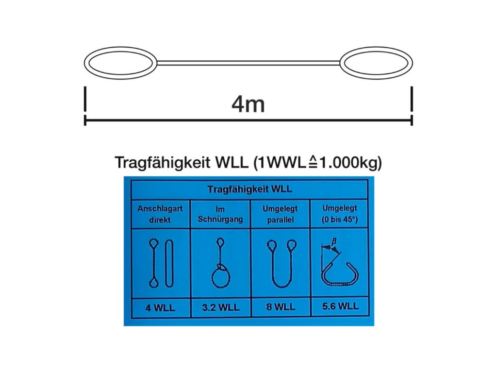 Zdvíhací popruh na zdvíhanie, ťahanie, alebo upevňovanie bremien na staveniskách, v teréne, v domácnosti a podobne. Modrý štítok testovania, všitý identifikačný štítok a návod na použitie. Farebné kódovanie podľa noriem EÚ. Nosnosť WLL 4000 kg (WLL – Working Load Limit) vytlačená na popruhu. Zdvíhací popruh na zdvíhanie, ťahanie, alebo upevňovanie bremien na staveniskách, v teréne, v domácnosti a podobne. Modrý štítok testovania, všitý identifikačný štítok a návod na použitie. Farebné kódovanie podľa noriem EÚ. Nosnosť WLL 4000 kg (WLL – Working Load Limit) vytlačená na popruhu. Popruh vyrobený z vysoko kvalitného polyesteru (PES), zosilnené koncové slučky, široká nosná plocha. Maximálna nosnosť pri priamom zaťažení: 4000 kg Maximálna nosnosť pri slučke: 3200 kg Maximálna nosnosť pri preložení: 8000 kg Maximálna nosnosť pri sklone 0-45°: 5600 kg Farebné kódovanie: sivá GS testované podľa EN1492-1/A1:2008 Šírka popruhu: 120 mm Celková dĺžka: 4 m Hmotnosť: 2,895 kgDoplňkové parametry
